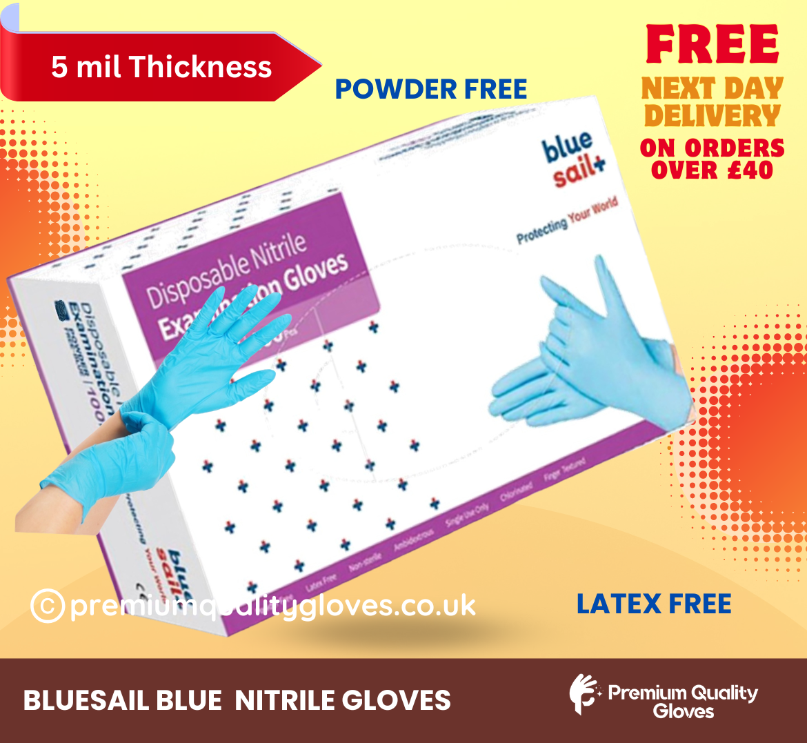 Examination and Industrial grade premium quality Nitrile gloves – 1.5 AQL, Powder free, Latex free – strong, comfortable and easy to put on and take off.