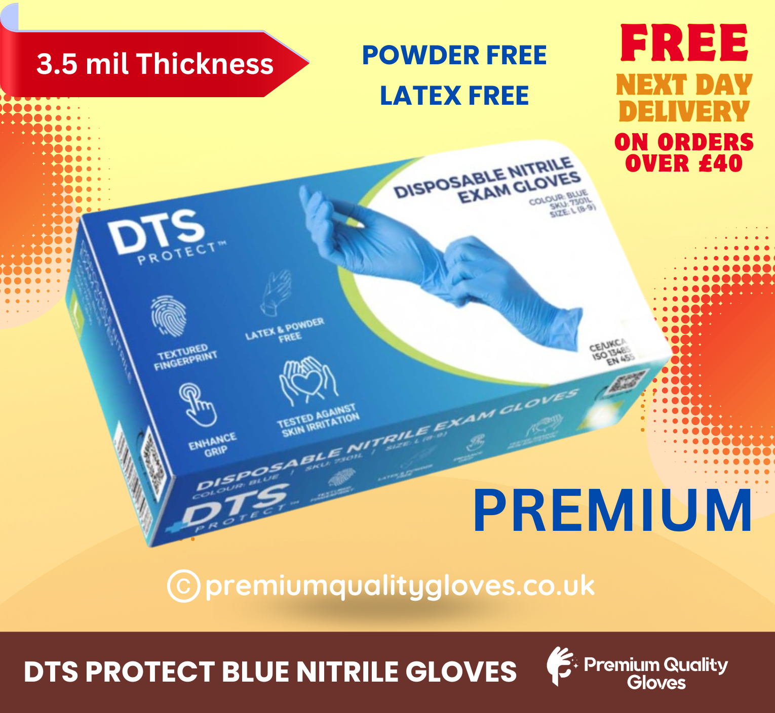 Examination and Industrial grade premium quality Nitrile gloves – 1.5 AQL, Powder free, Latex free – strong, comfortable and easy to put on and take off.